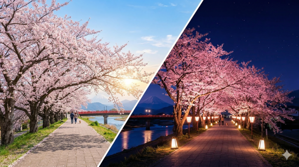 混雑を避けた「朝桜」や幻想的な「夜桜」など、時間帯を変えるだけで桜は全く異なる表情を見せます。